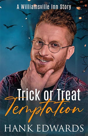 Trick or Treat Temptation is a heartwarming, slow-burn romance featuring childhood crushes on a best friend’s brother, awkward family dynamics, a costume contest, and two men discovering that the perfect time to fall in love might just be during the spookiest season of all.