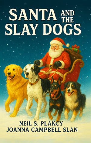 Joanna Campbell Slan and I have a follow-up to our joint venture, Death at the Dog Park, coming out next Monday. Santa and the Slay Dogs contains two fun holiday novellas, featuring Rochester and Grace (the Great Dane from Joanna’s series.) I’ll write more about both stories next week, but if you’re eager you can pre-order now. It will be available on all major retailers.